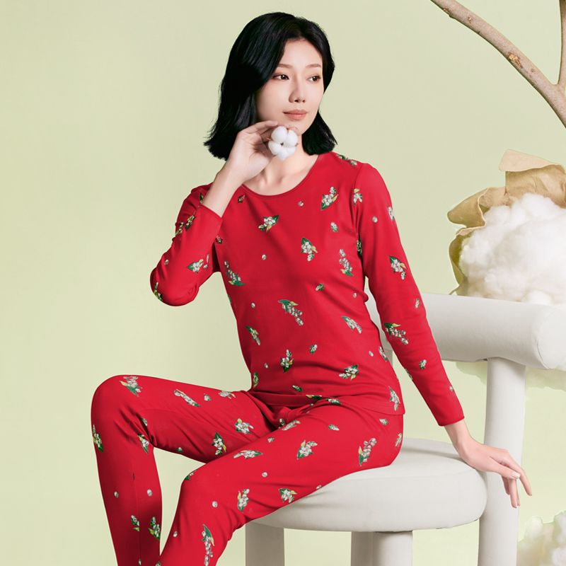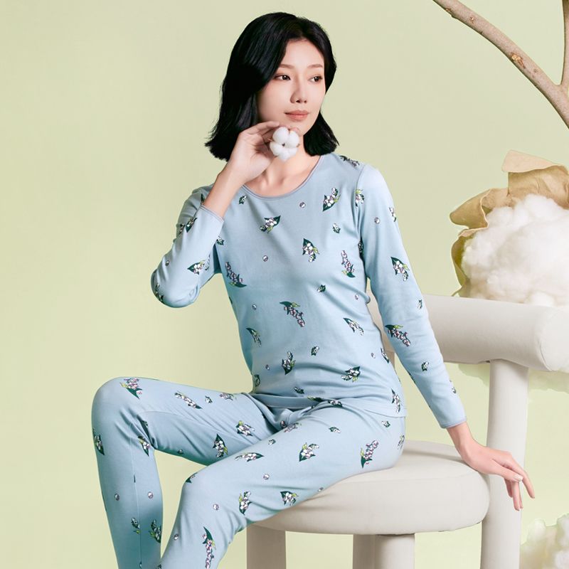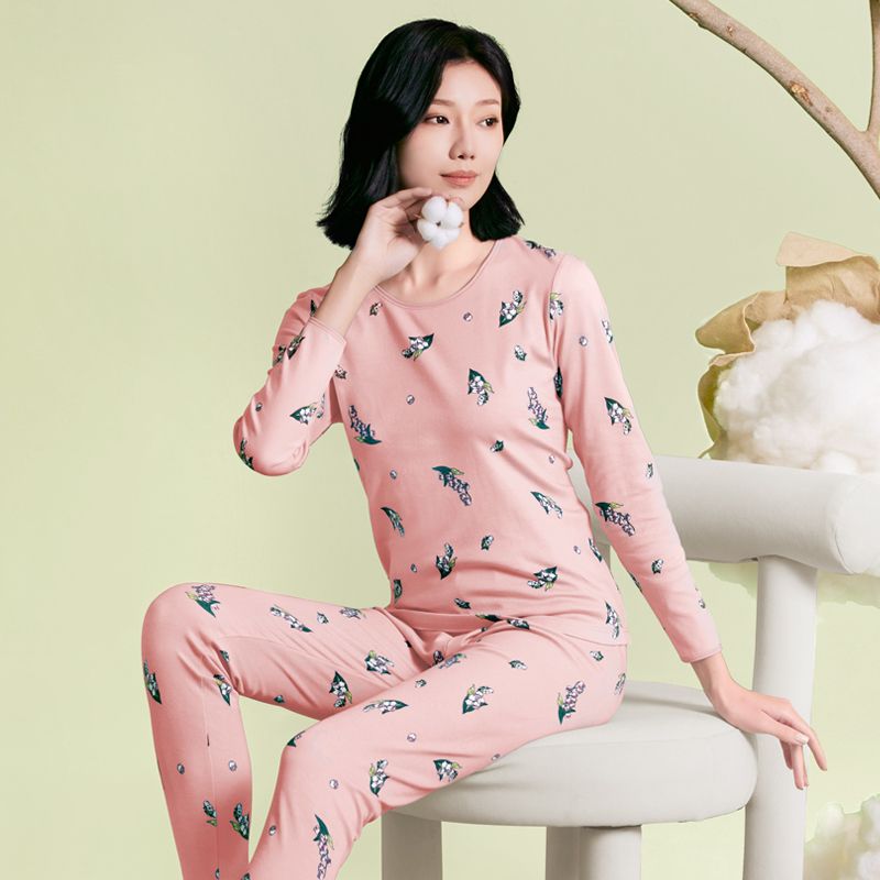 意大莱老年人秋衣女纯棉薄款秋裤妈妈保暖内衣套装中老年全棉毛衫
