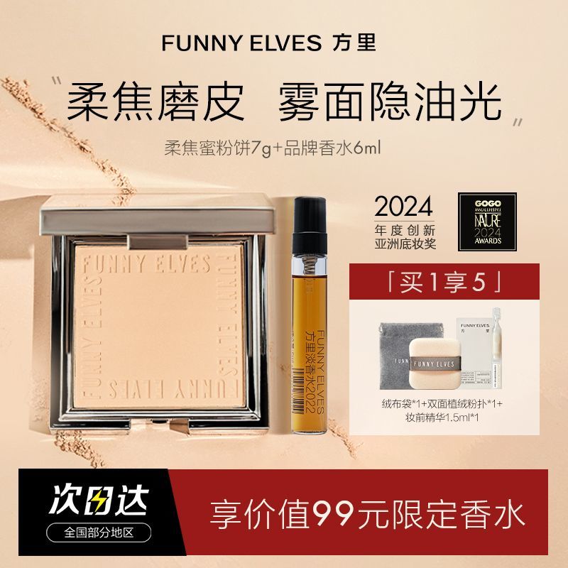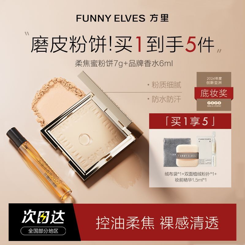 FUNNYELVES方里磨皮粉饼柔焦遮瑕不卡粉控油定妆防水防汗隐匿毛孔