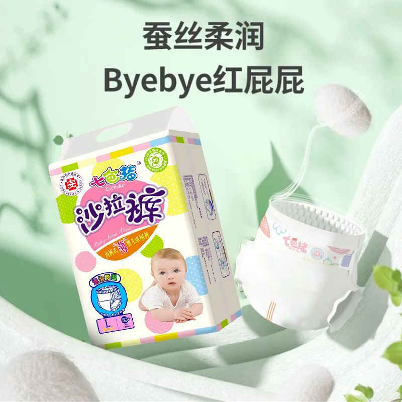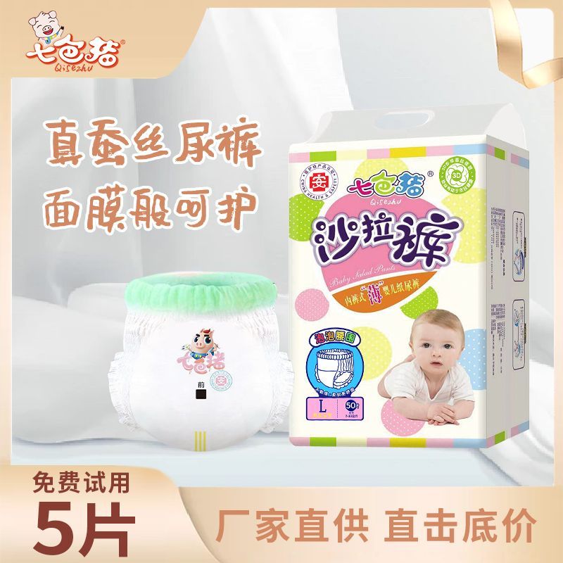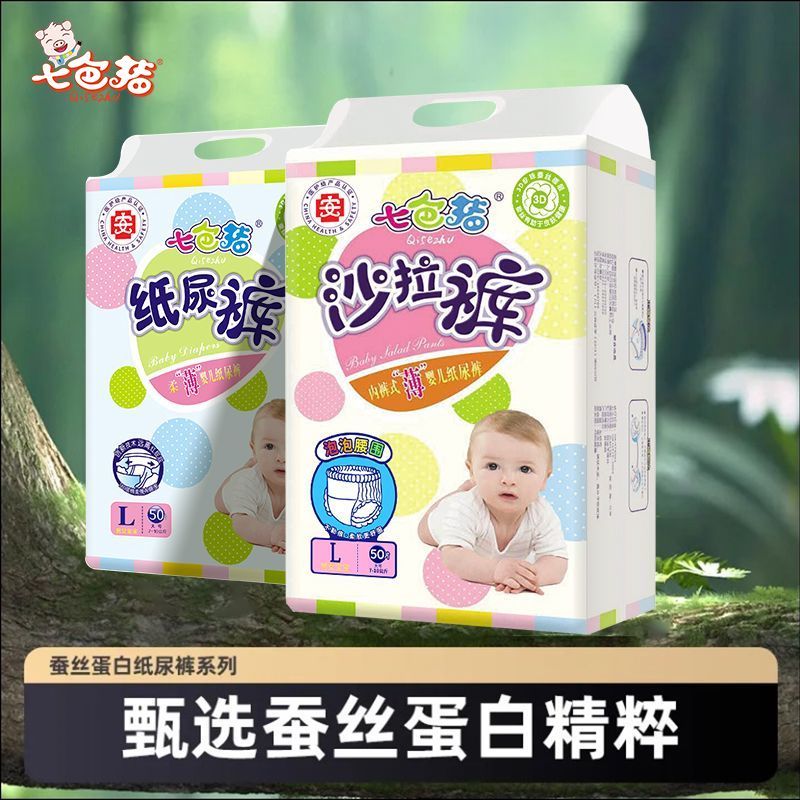 七色猪蚕丝拉拉裤男宝宝医护级纸尿裤女婴儿超薄透气大吸量尿不湿