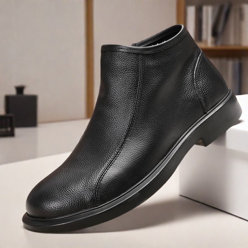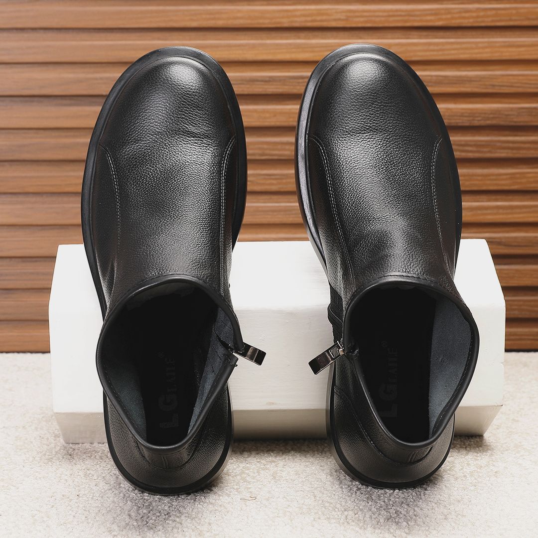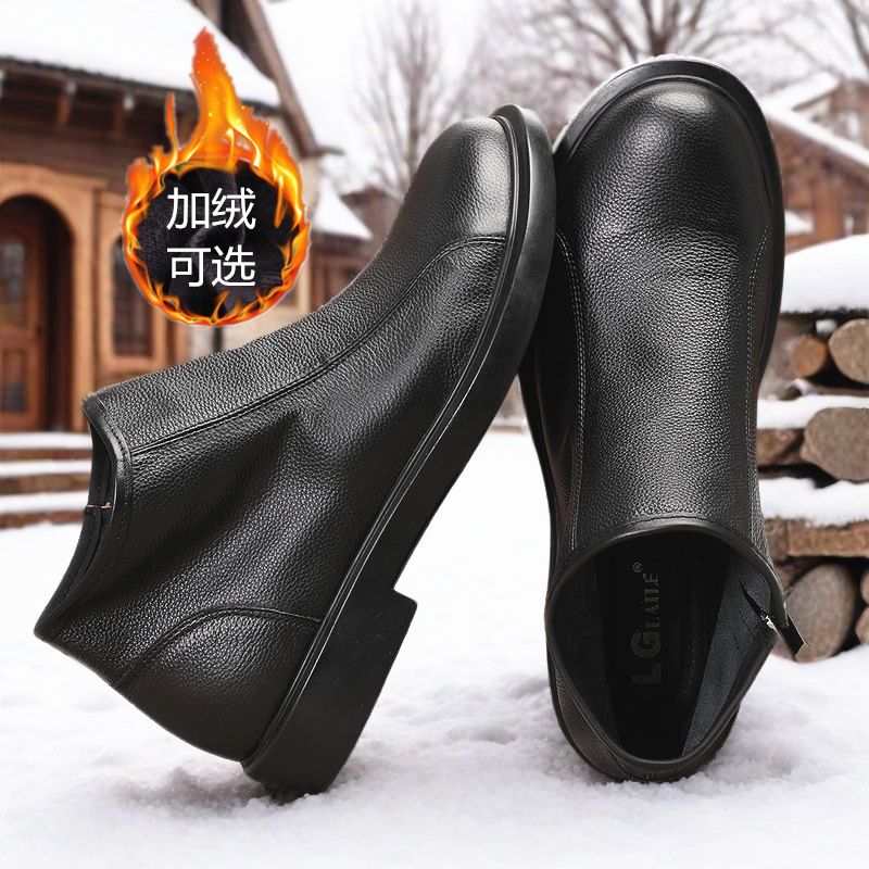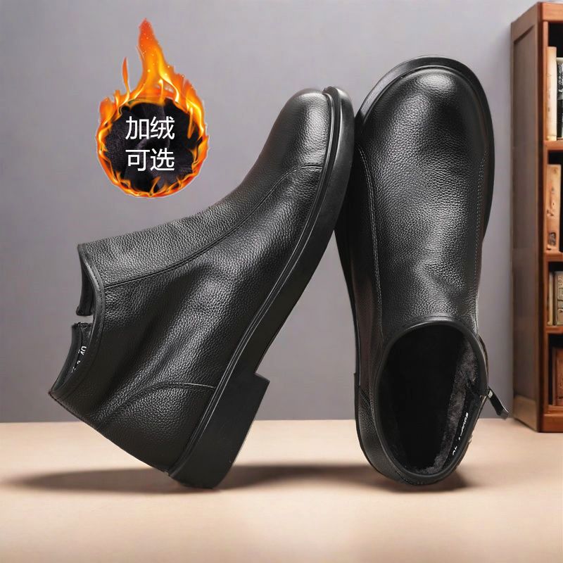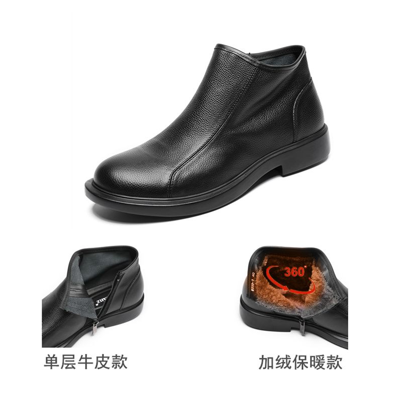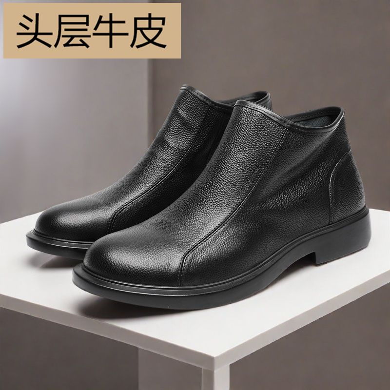 新款马丁靴头层牛皮休闲拉链皮靴中帮皮鞋中年真皮切尔西男靴男鞋