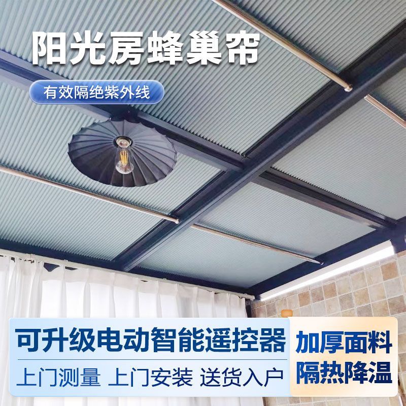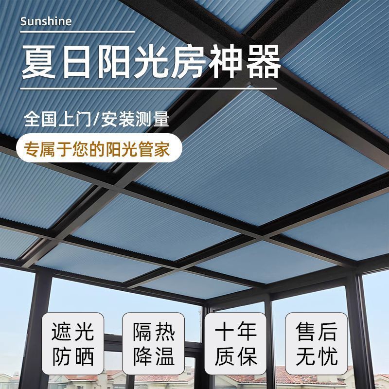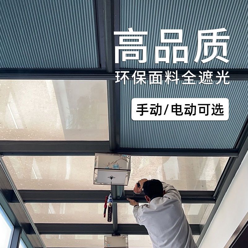 阳光房遮阳顶帘手动玻璃天棚天窗隔热防晒遮光电动窗帘蜂巢