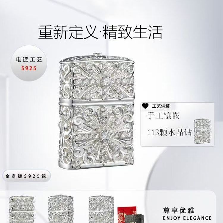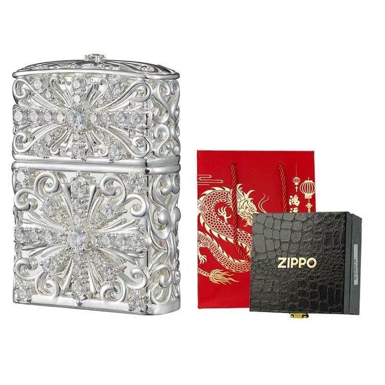 Zippo打火机正品防风煤油经典满钻克罗心之恋男士收藏情人节送礼