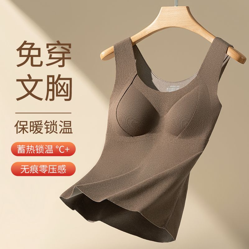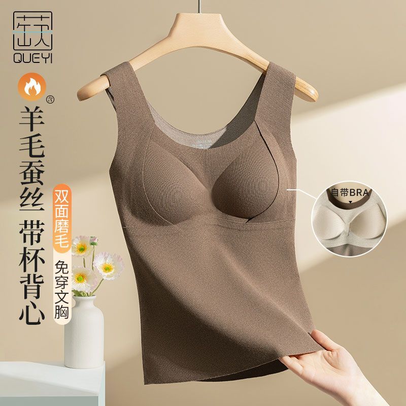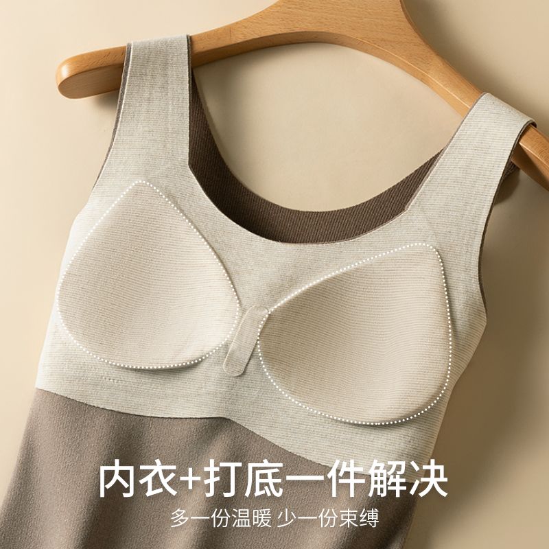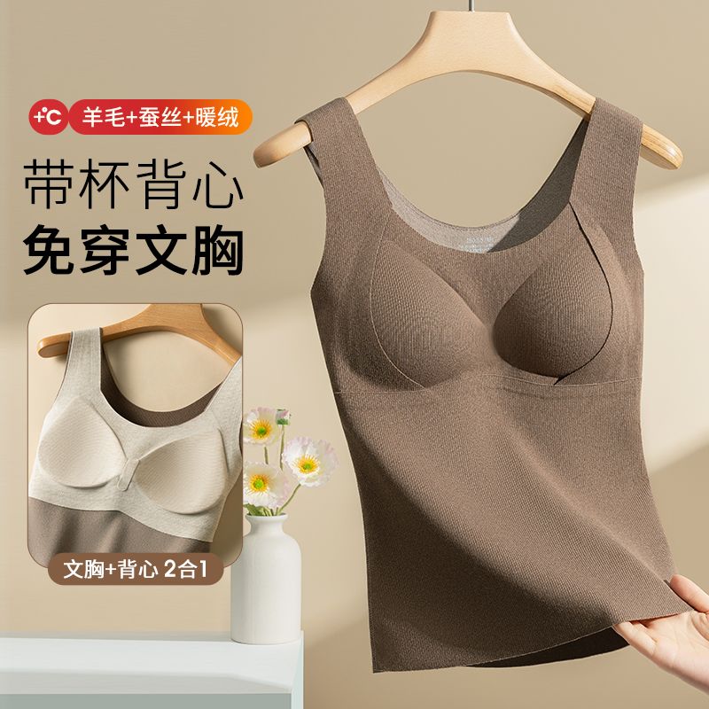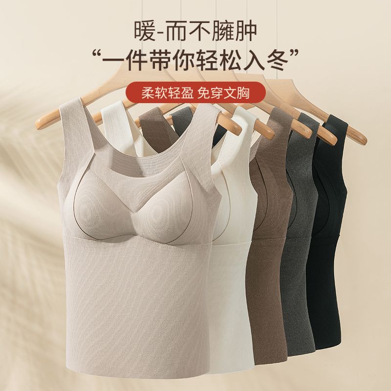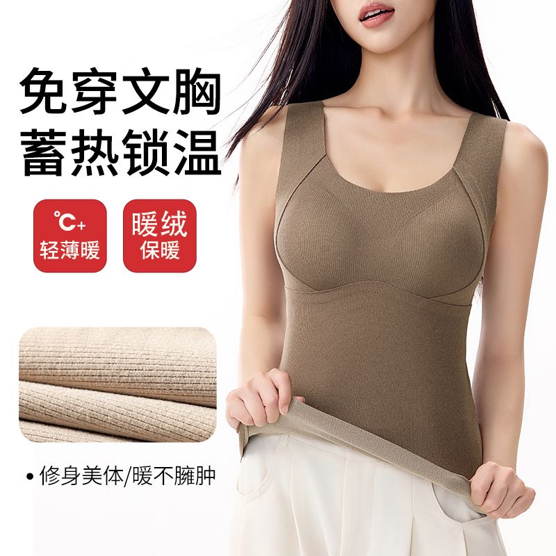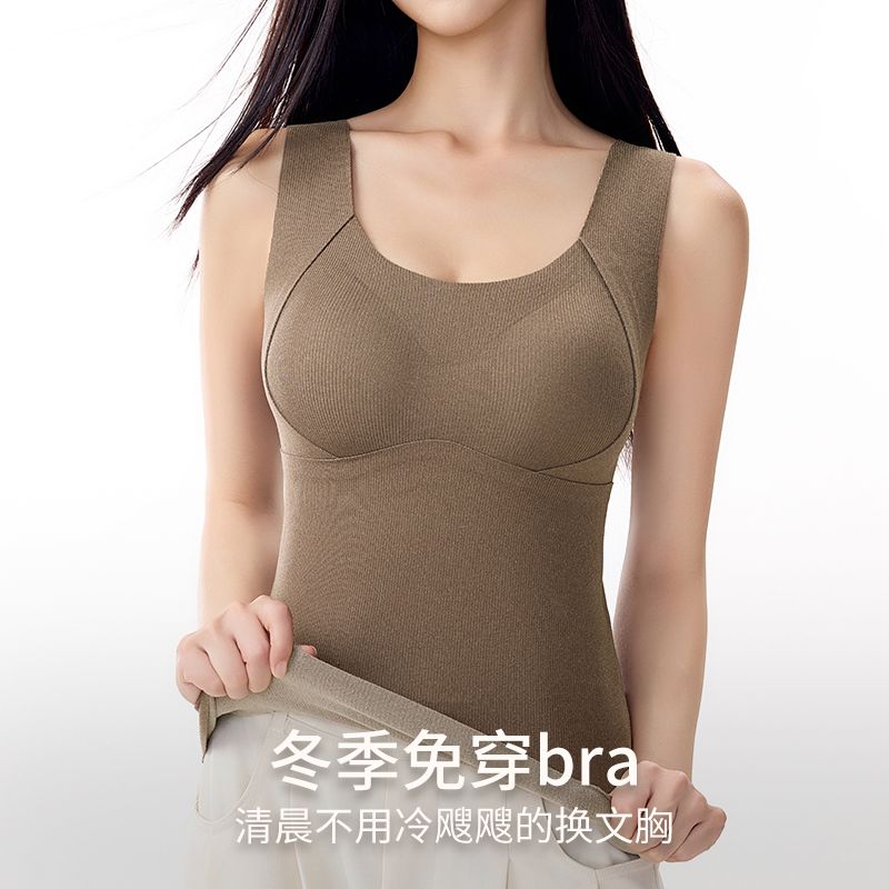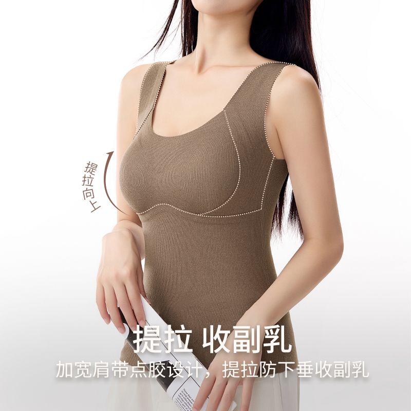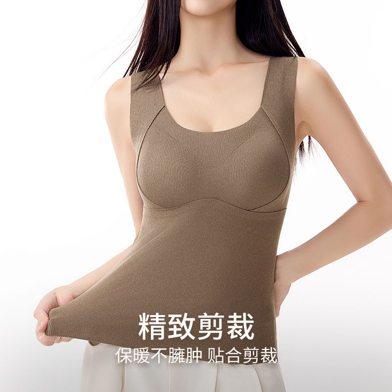 蒛一无痕保暖背心双面薄绒内衣女发热内穿外搭含羊毛打底衣秋冬季