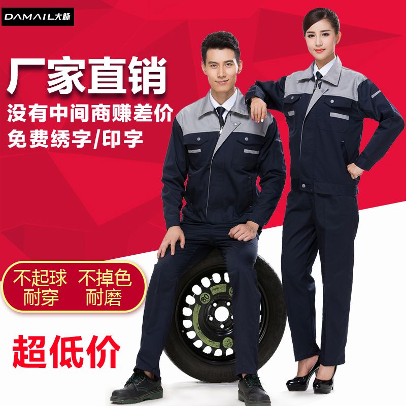 工作服套装男耐磨秋冬长袖车间厂服上衣定制汽修服工装加厚劳保服