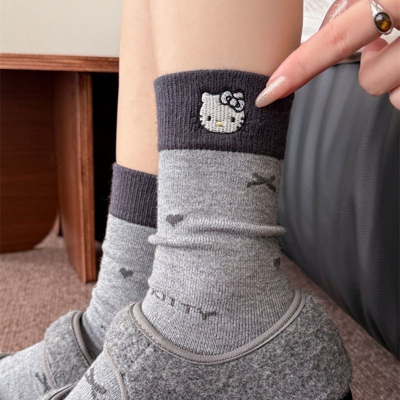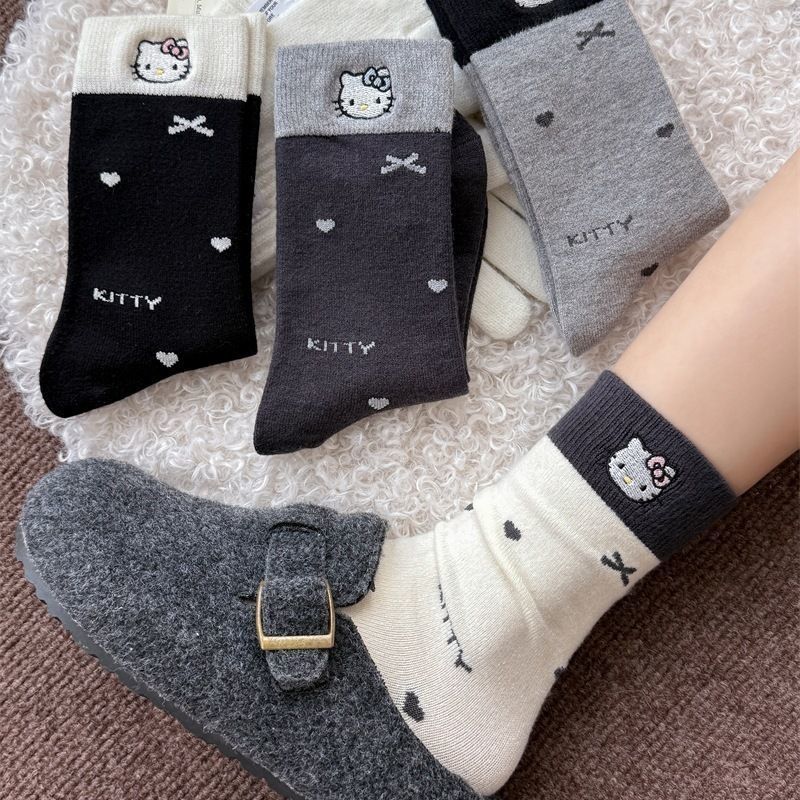 佳适袜子女袜网红爆款中筒袜子可爱卡通猫咪洛丽塔蝴蝶结堆堆袜【3天内发货】