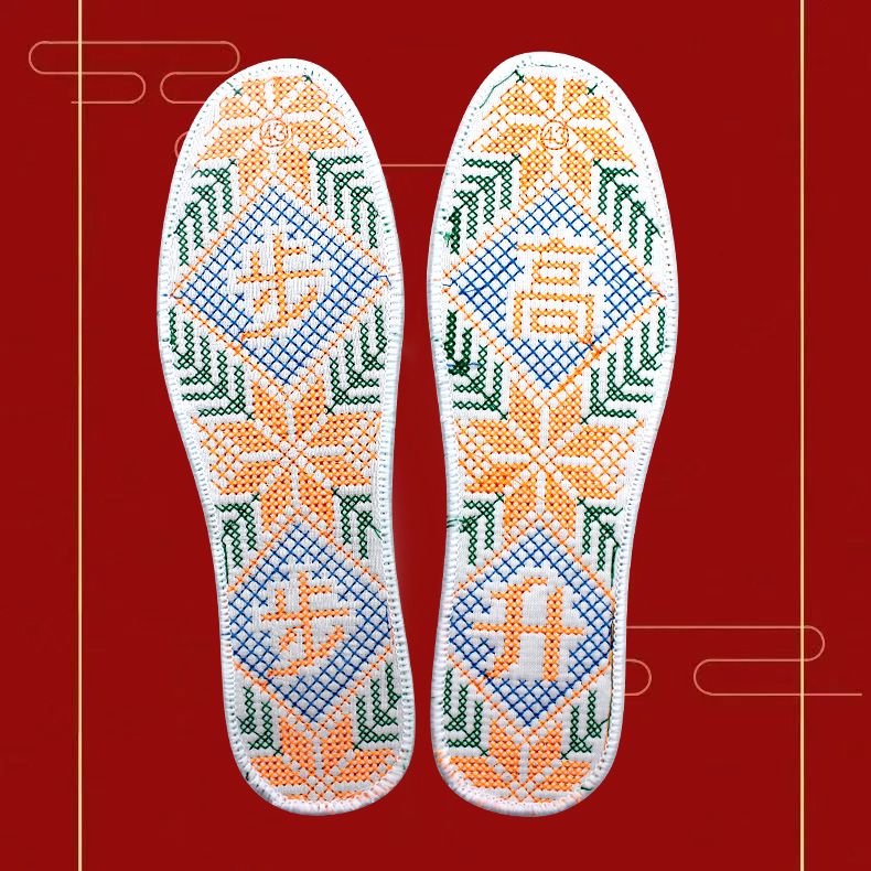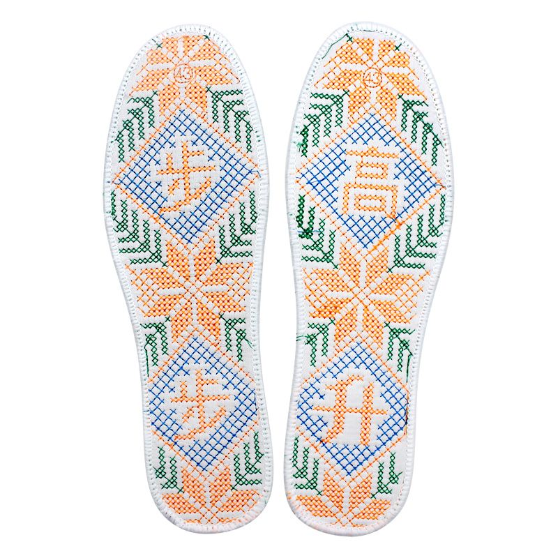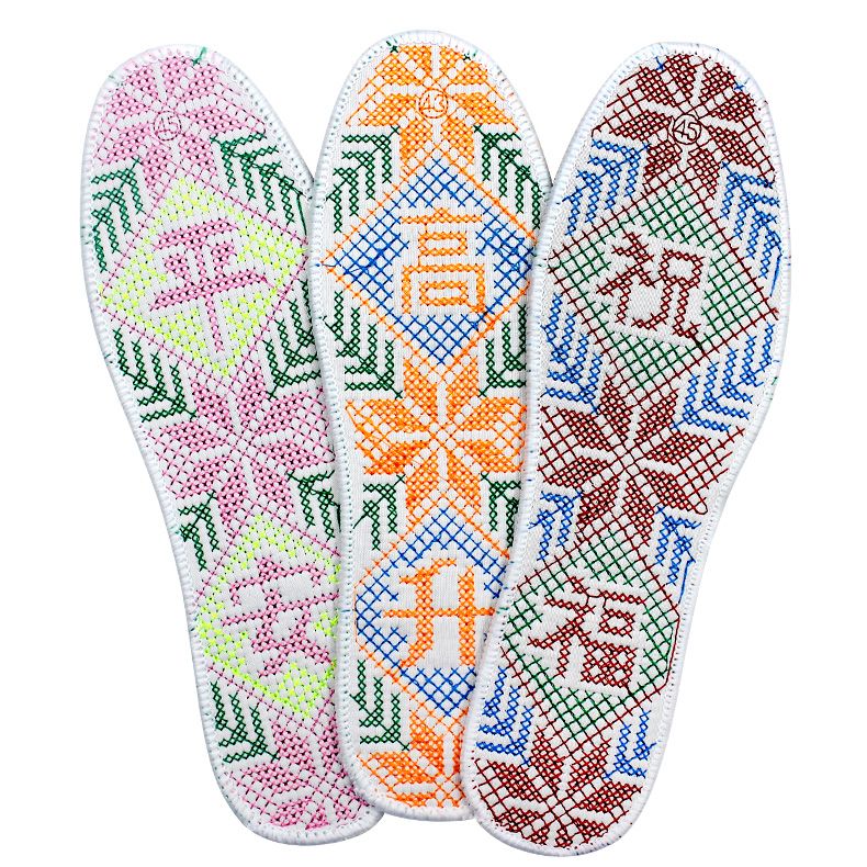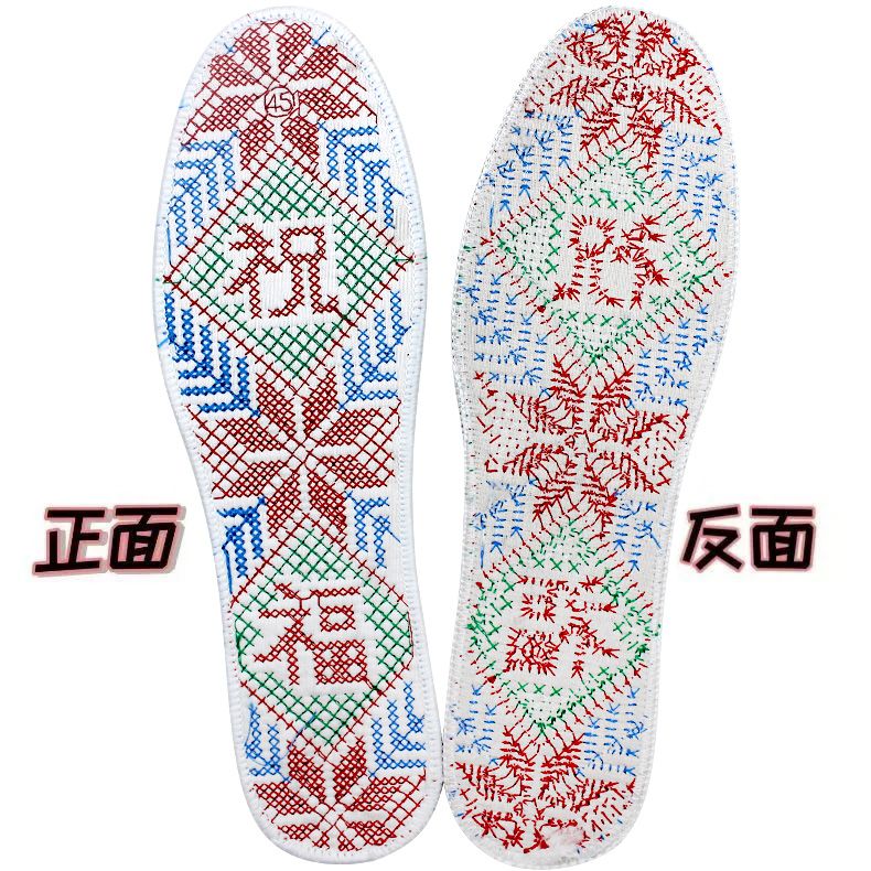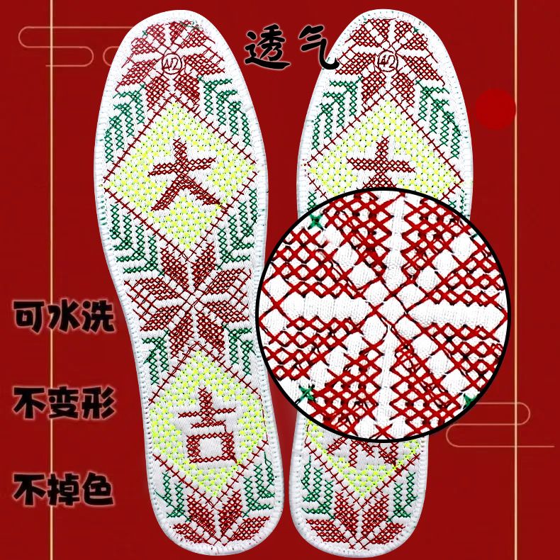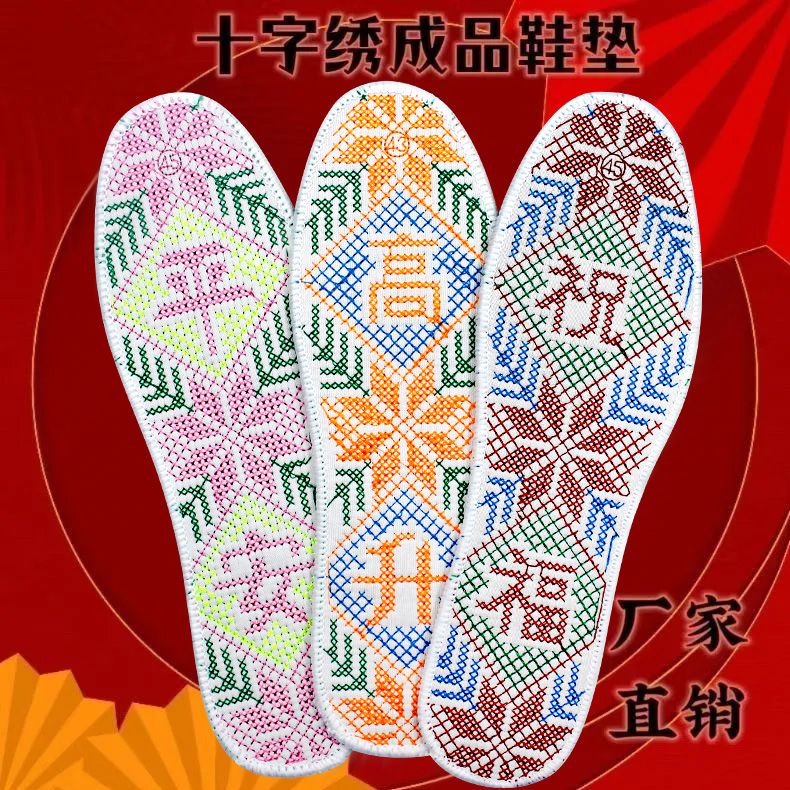 纯棉成品双线十字绣加厚加密满绣刺绣鞋垫男女通用吸汗透气防臭