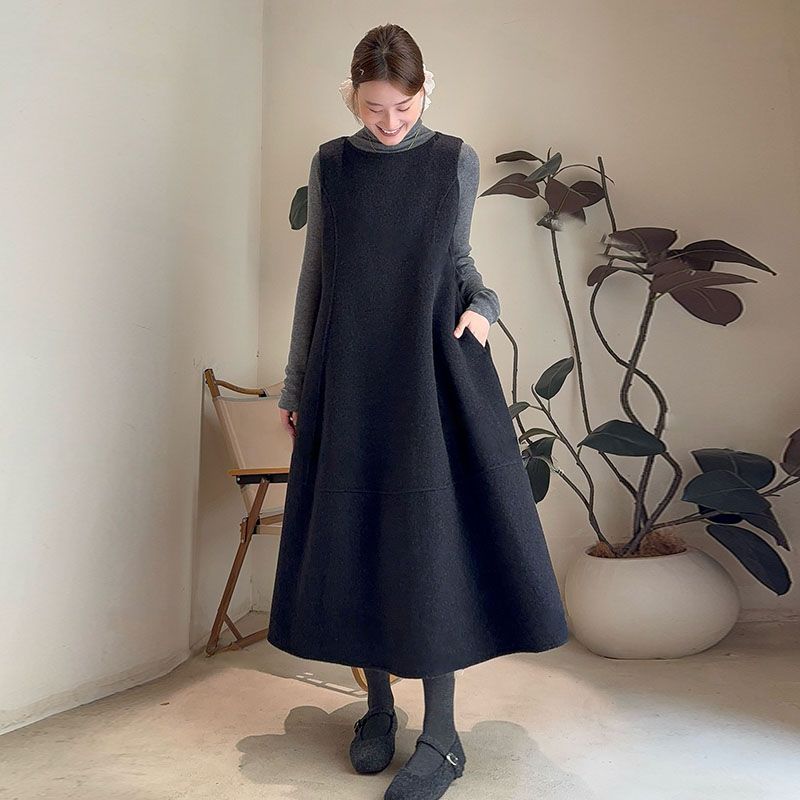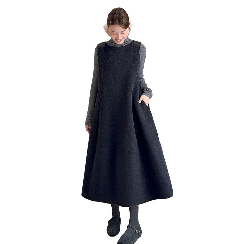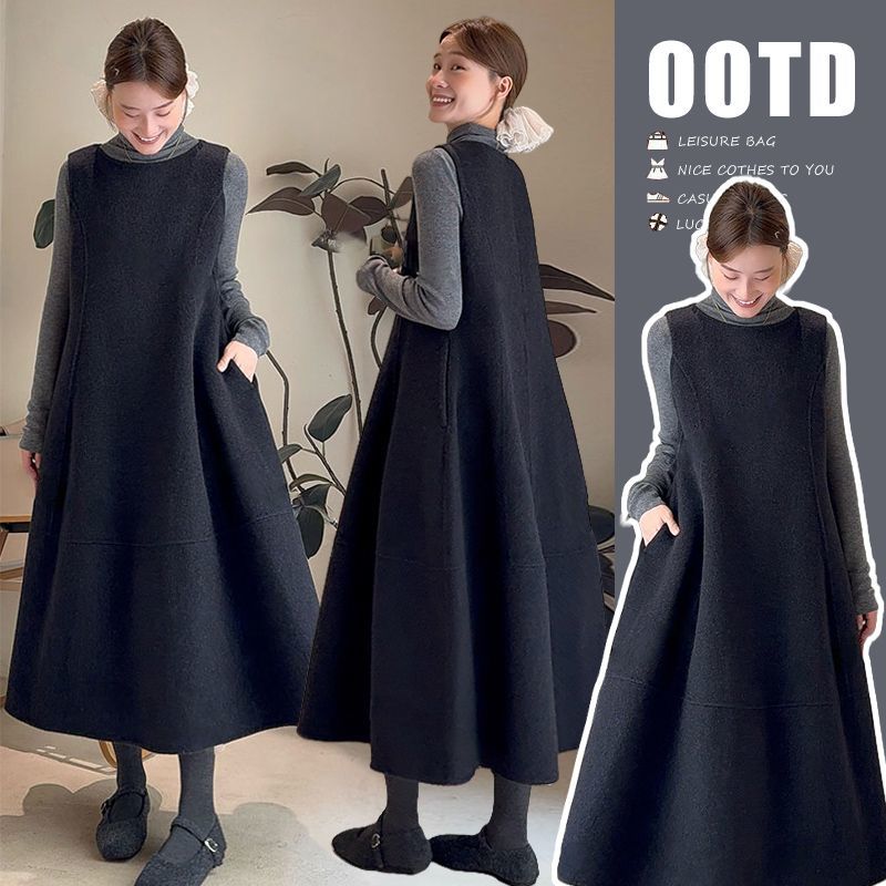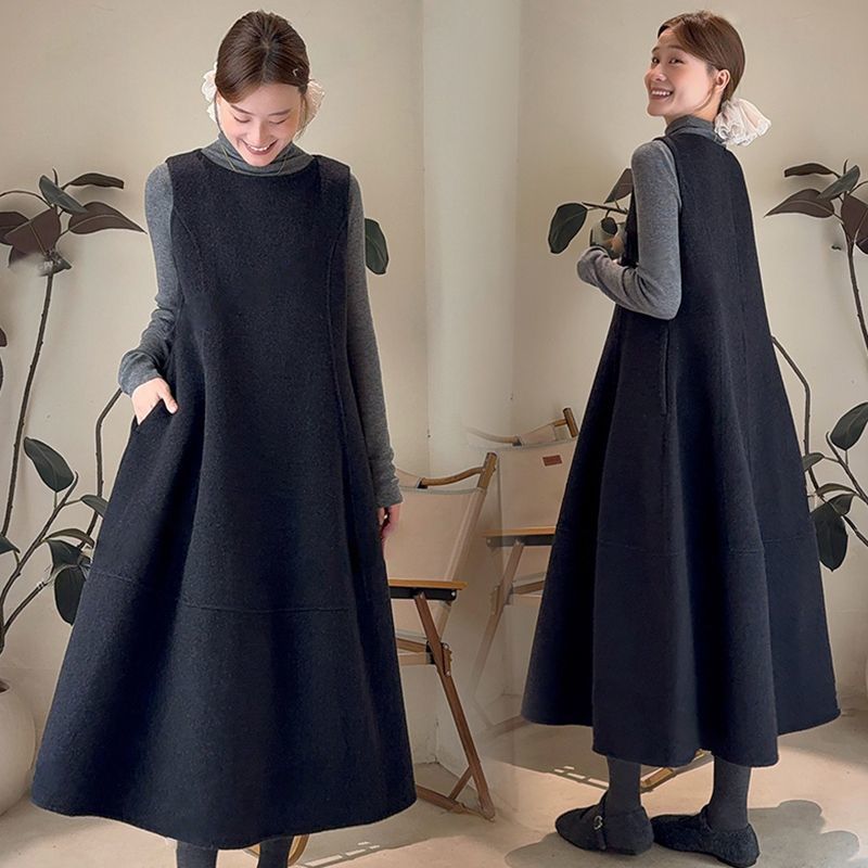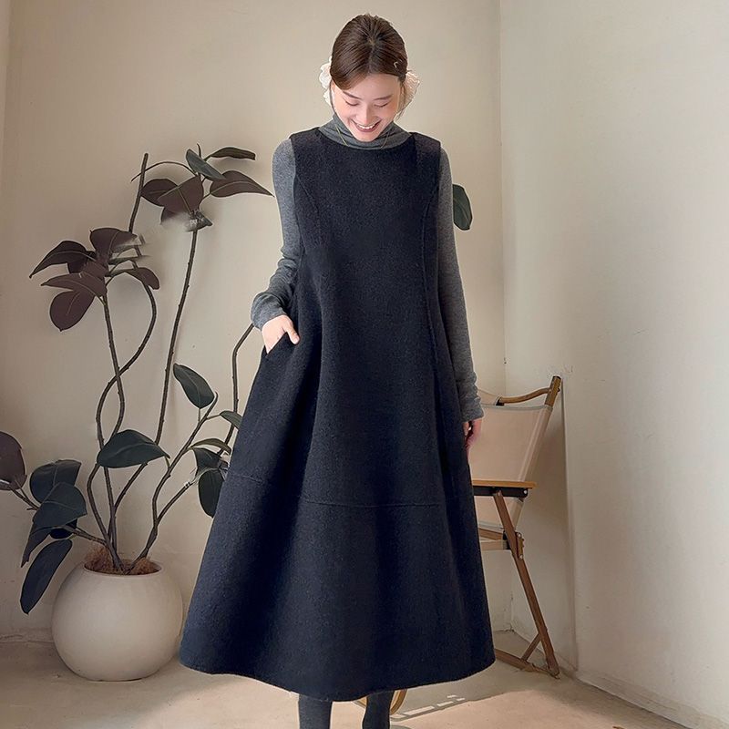 巨好看秋冬新款针织高领打底衫背心毛呢长裙两件套套装【12月10日发完】