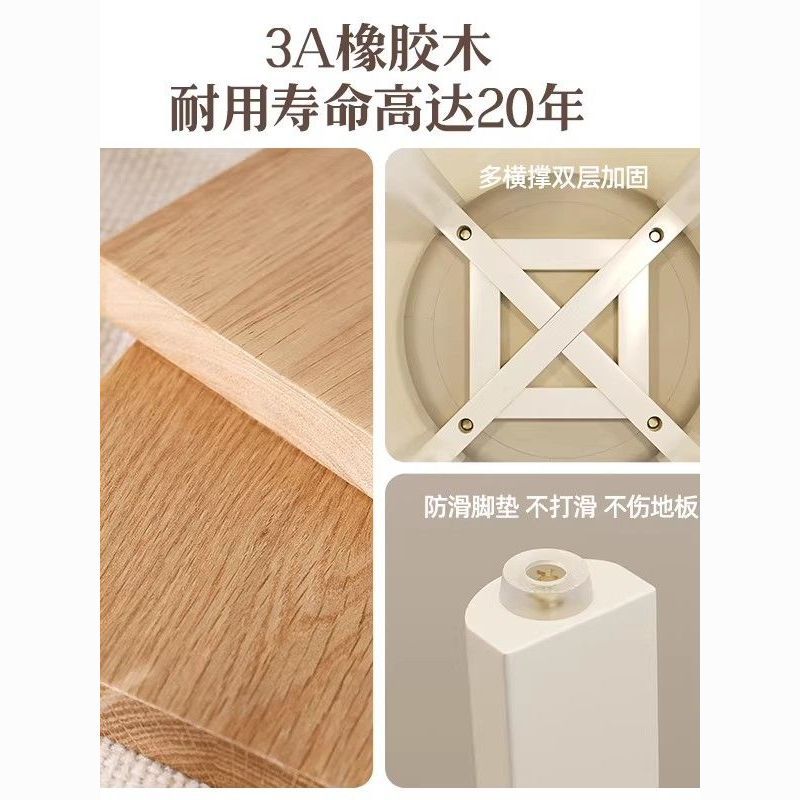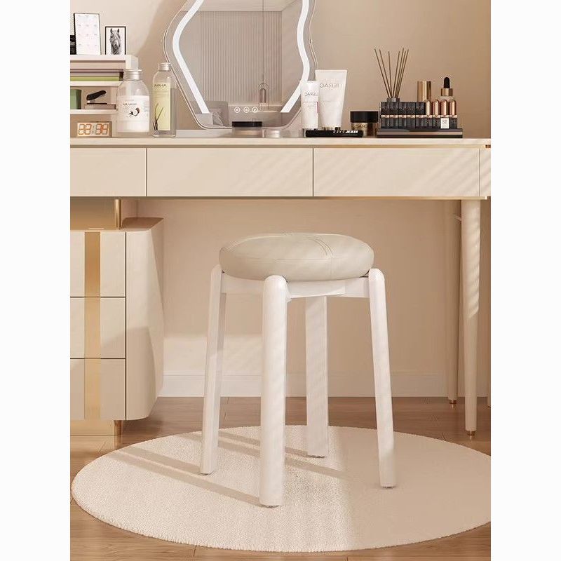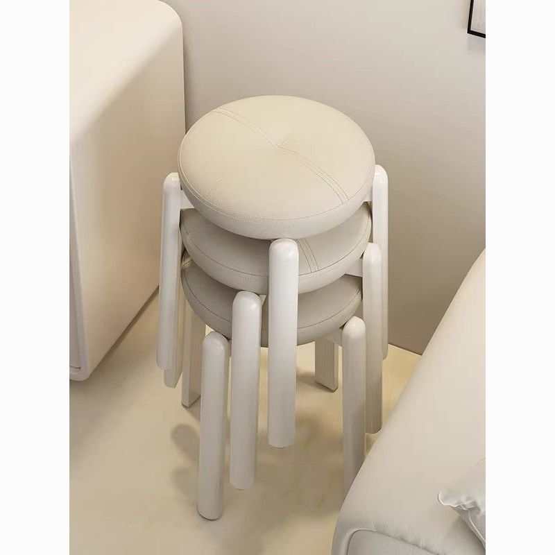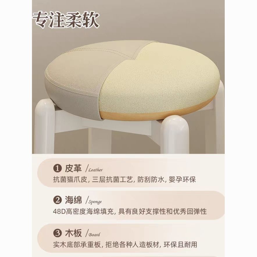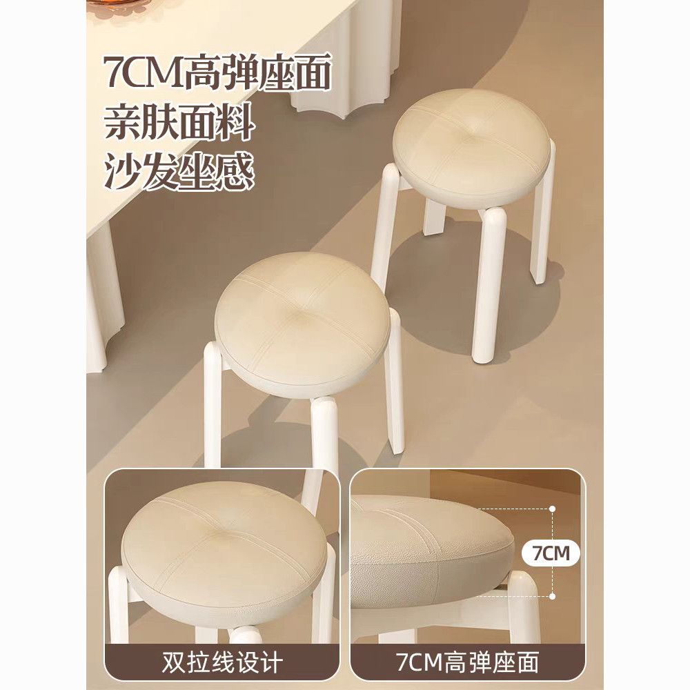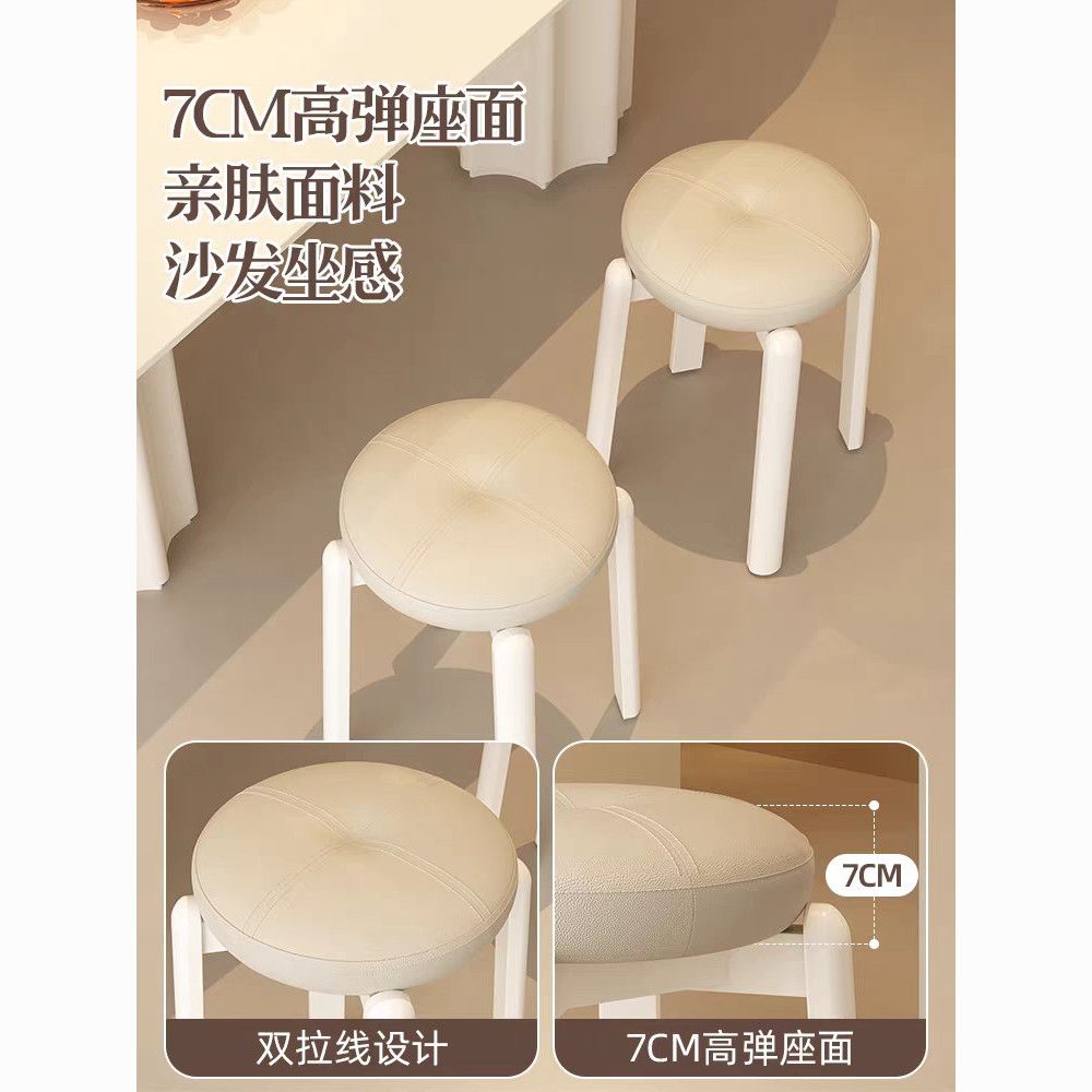 实木凳子家用客厅可叠放软包圆凳奶油风餐桌家庭备用高板凳化妆凳