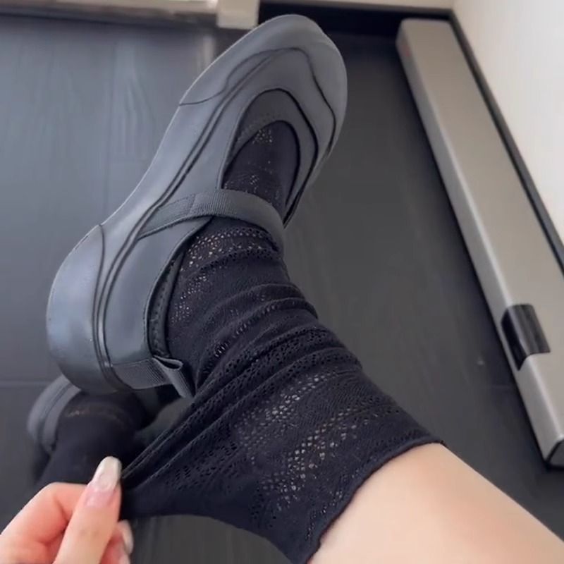 白色蕾丝中筒袜夏季袜子透气薄款蕾丝透气芭蕾风中筒袜搭配小皮鞋