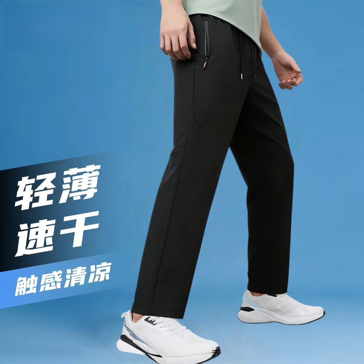 夏季男女款新款运动长裤轻薄凉爽速干裤拉链口袋设计直筒休闲长裤