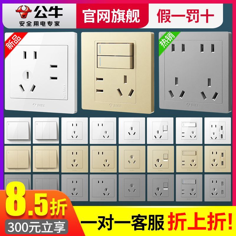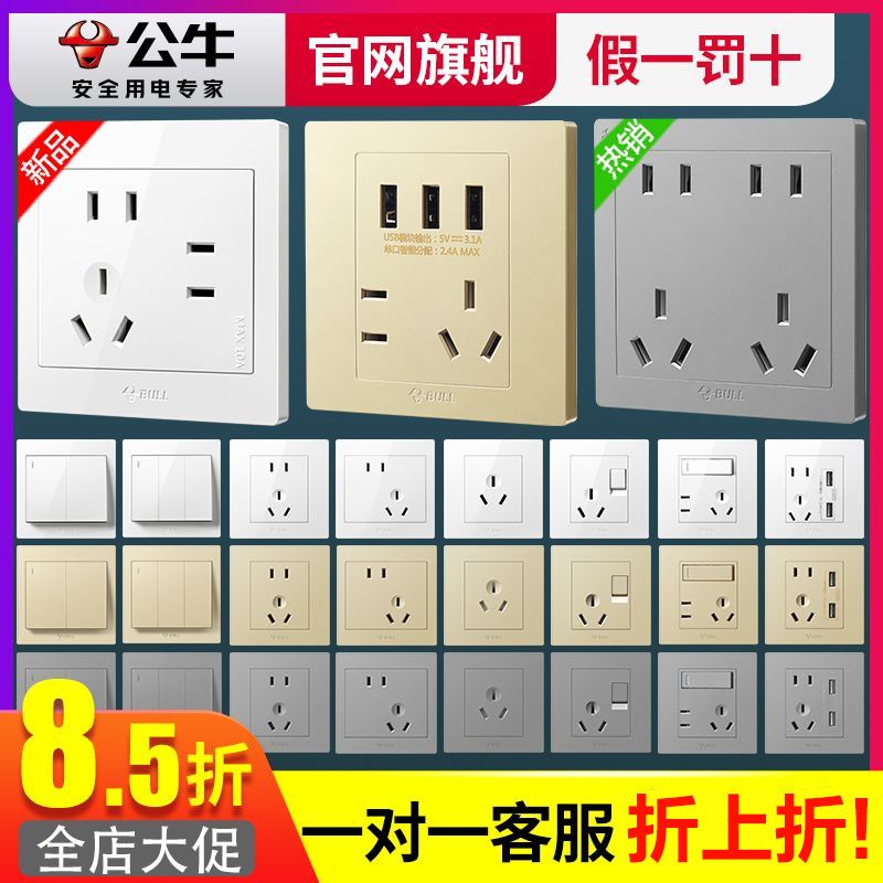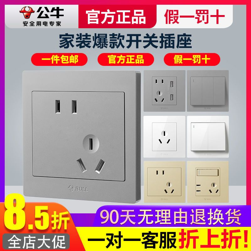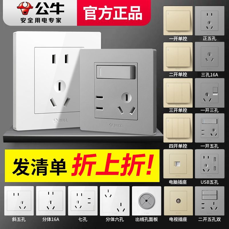 公牛开关插座正品原装开关家用墙壁开关usb五孔插座面板暗装墙上