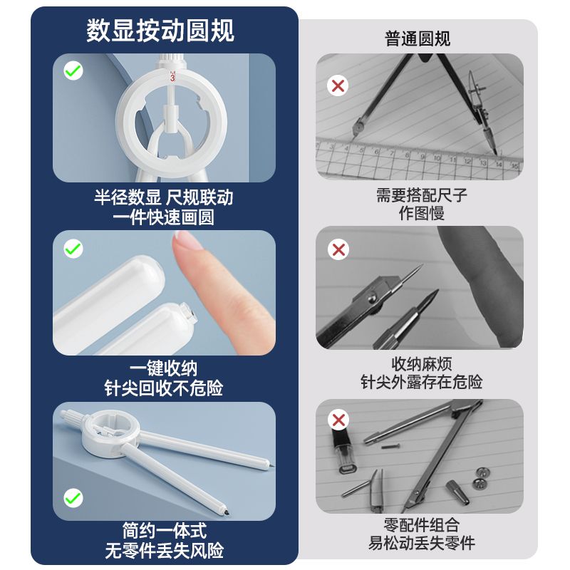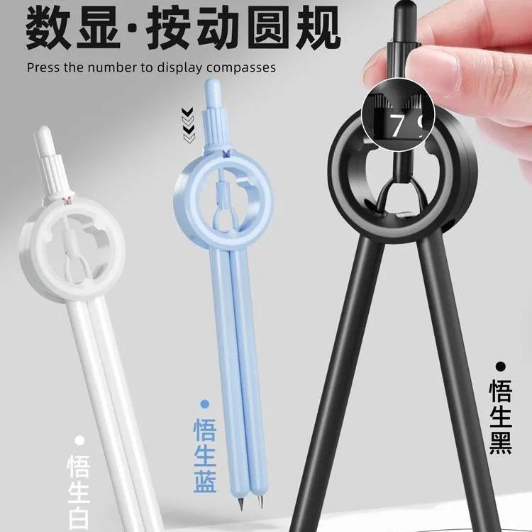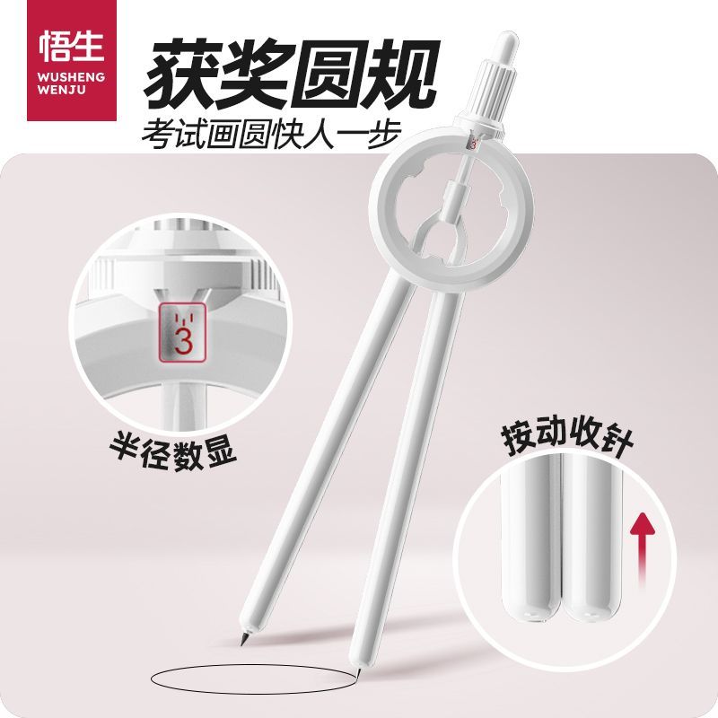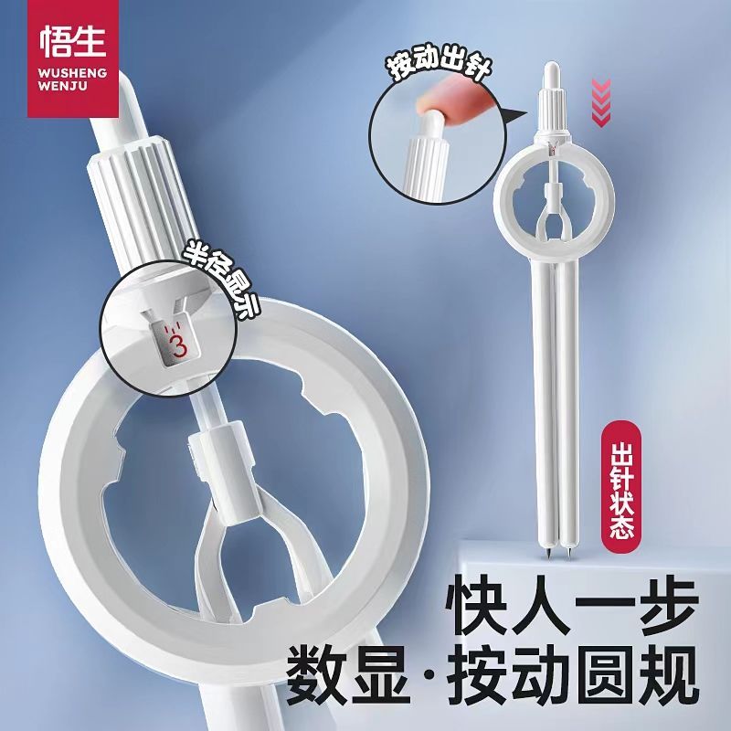 悟生数显圆规按动收针高颜值科技感一体式创意小学中学高中绘图