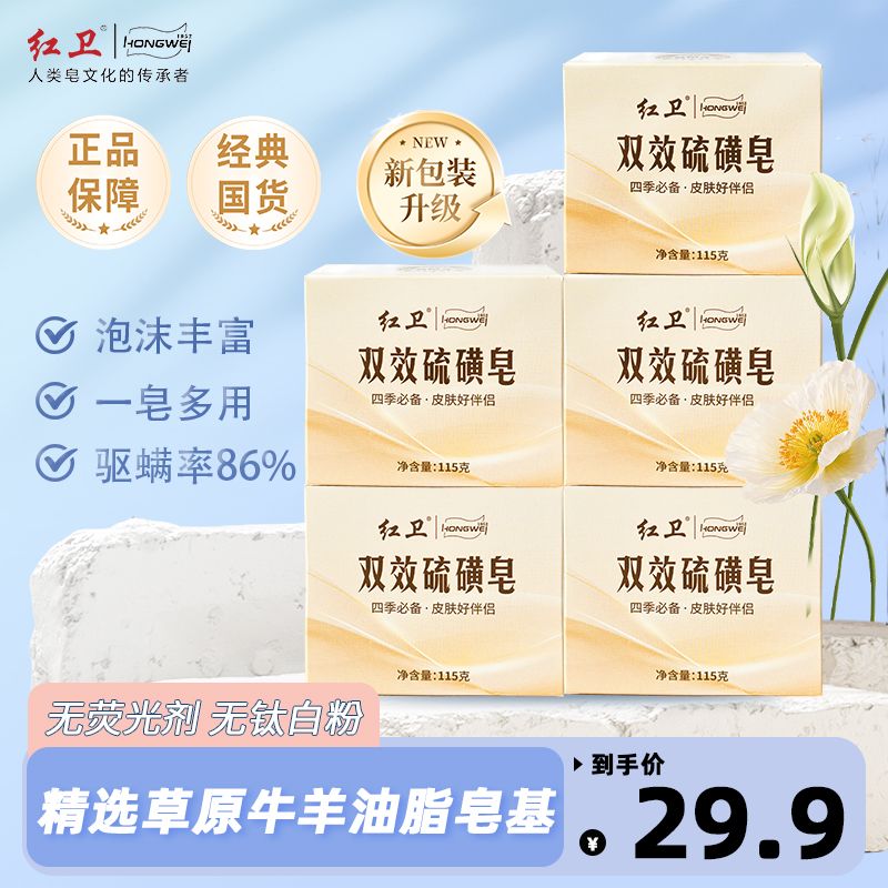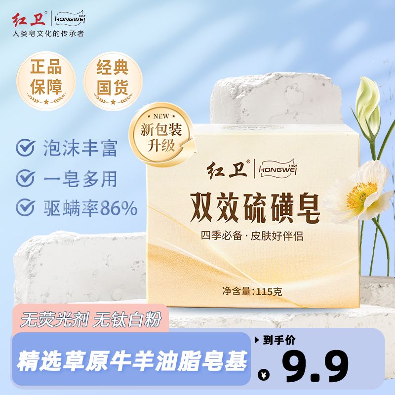 正品红卫硫磺皂沐浴洗澡祛螨抑菌肥皂清洁温和不刺激洗脸羊脂皂