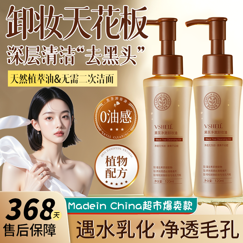 植贝黑茶卸妆油眼唇脸部三合一温和不刺激深层清洁清爽敏感肌学生