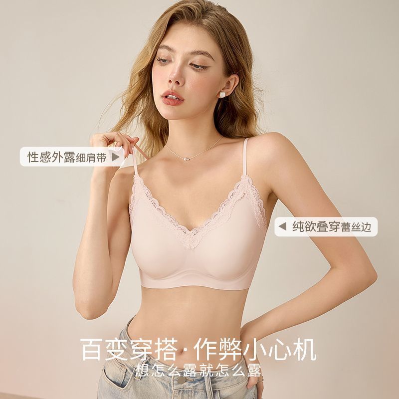 【都市丽人】无痕蕾丝女小胸内衣聚拢钢圈小胸背心细肩带文胸胸罩【4天内发货】