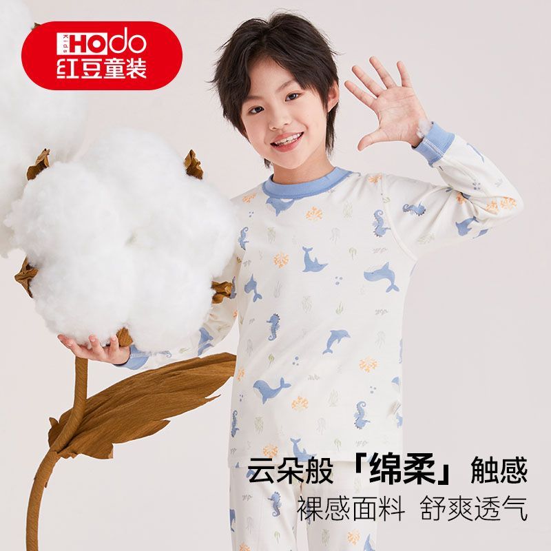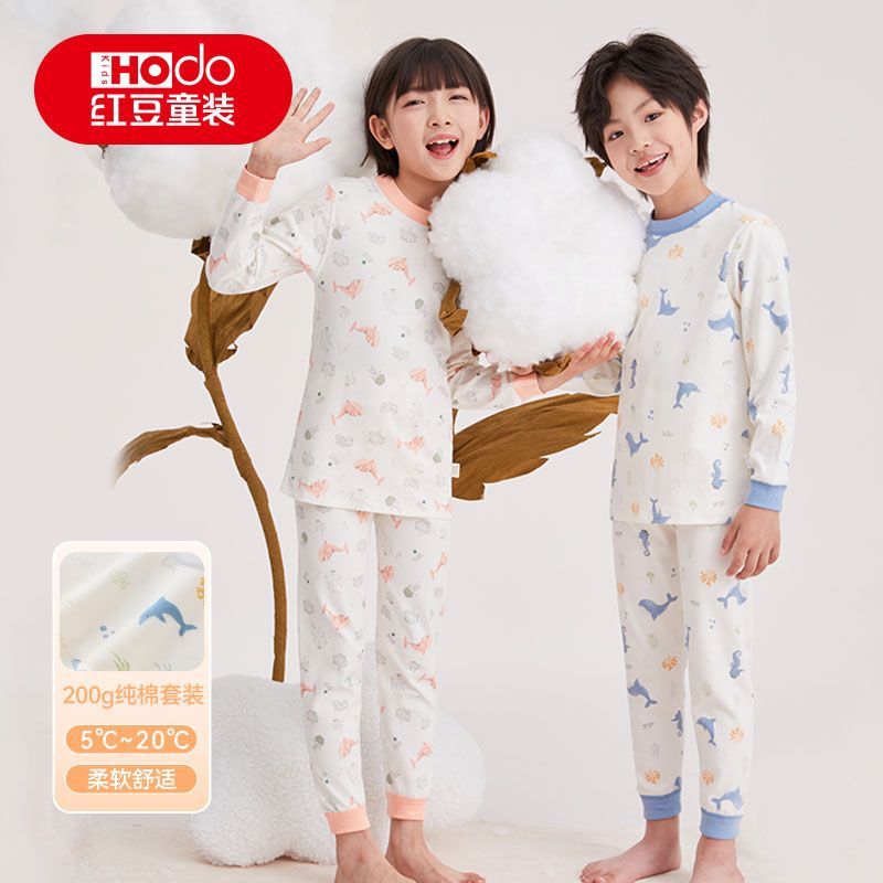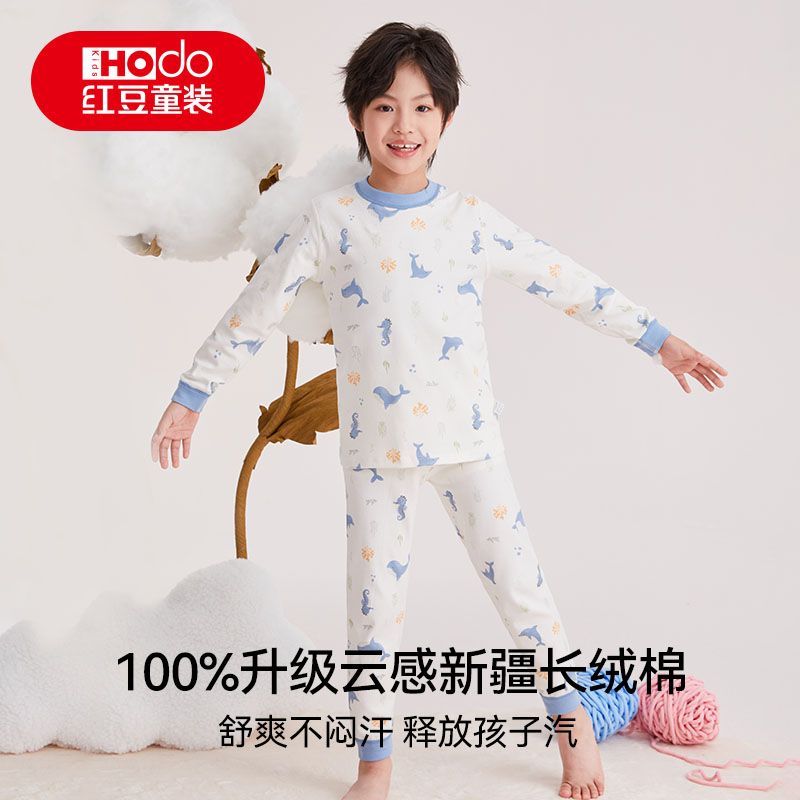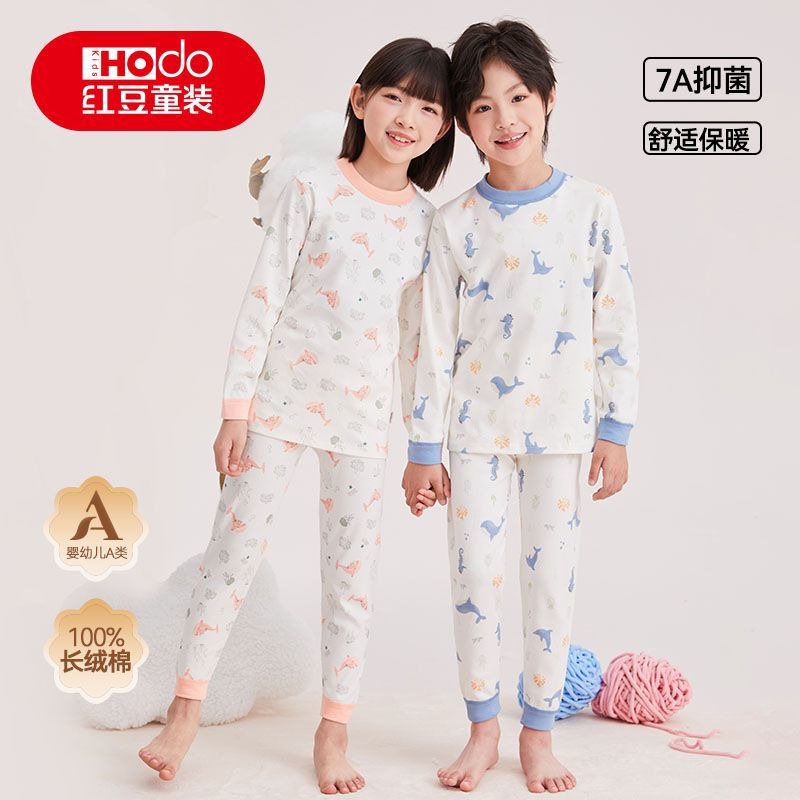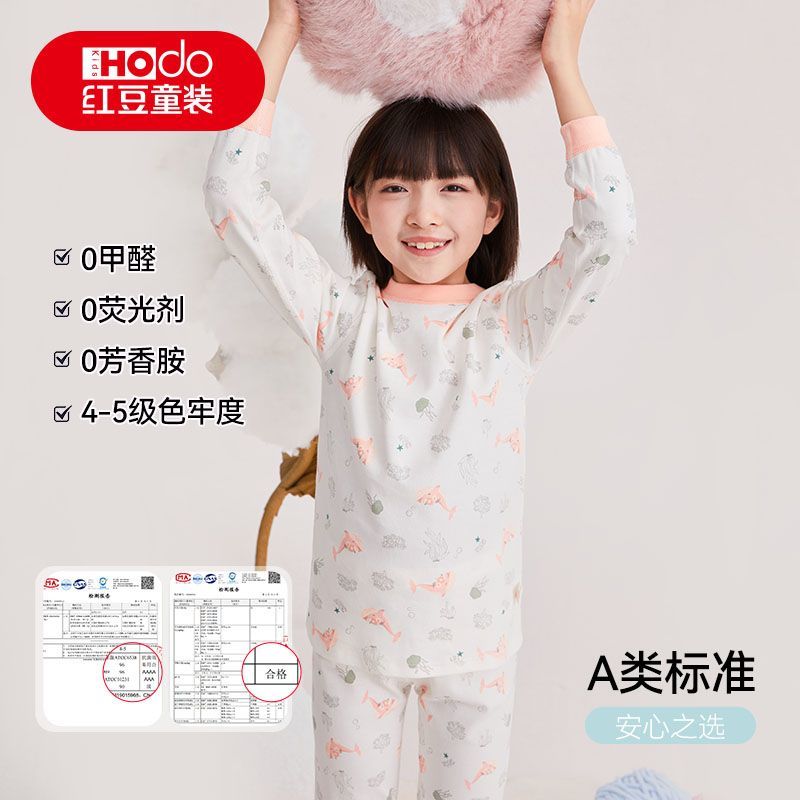 红豆儿童纯棉a类保暖内衣男女童卡通秋衣裤套装秋冬宝宝家居睡衣