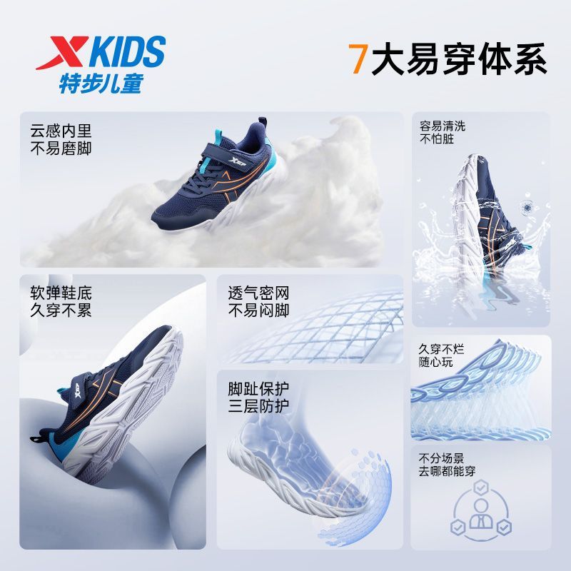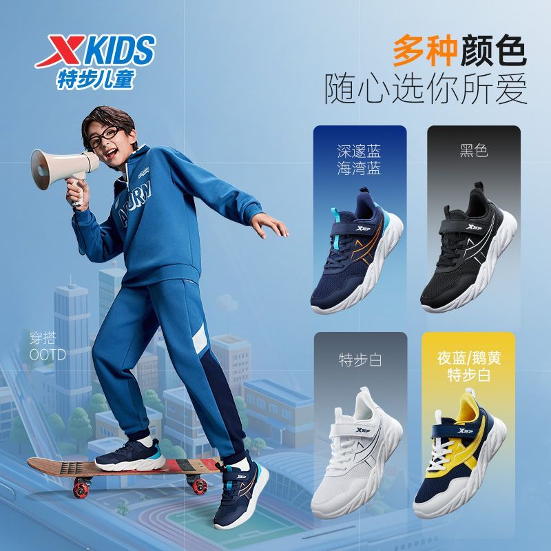 【百搭回弹】特步儿童男童春秋中大童舒适百搭校园运动休闲跑步鞋
