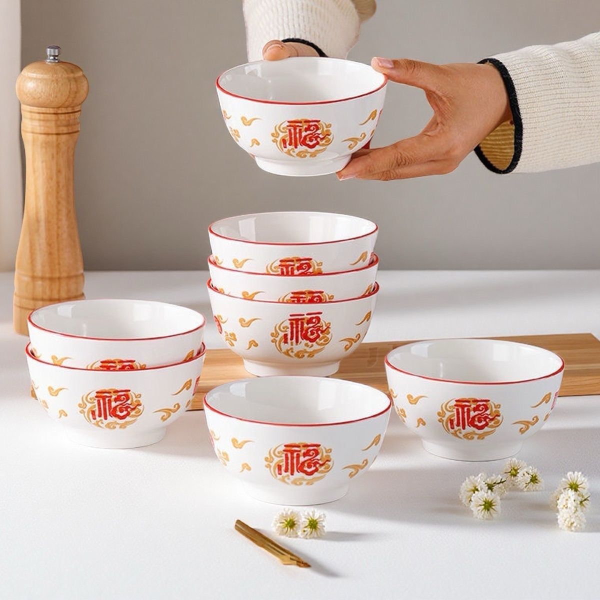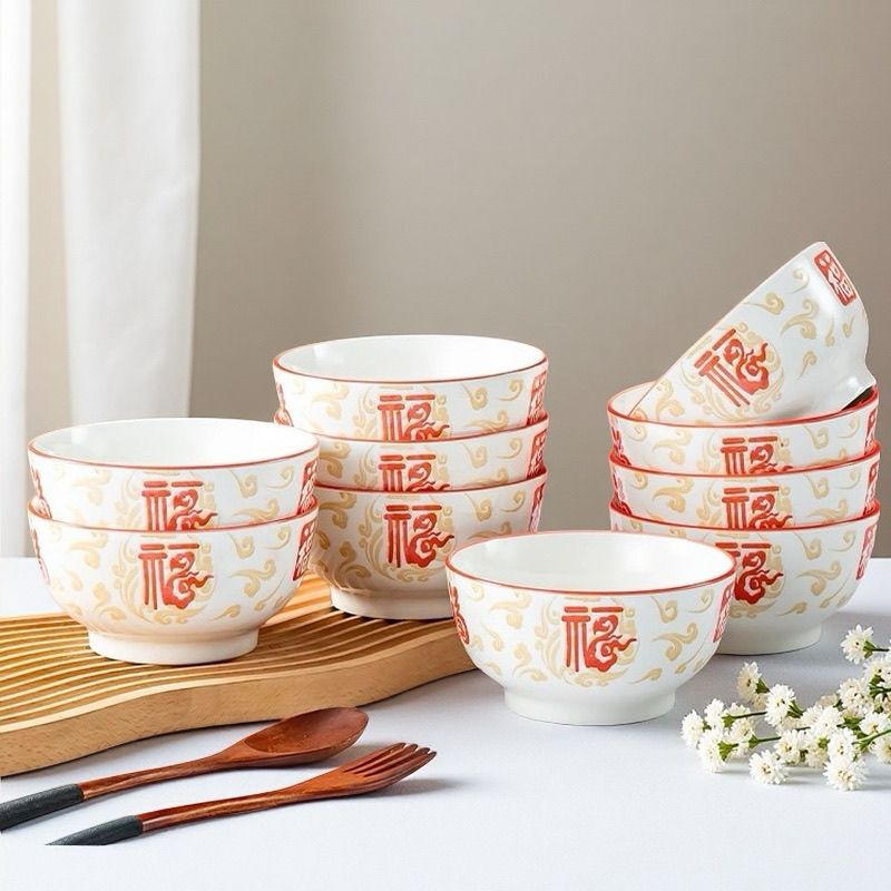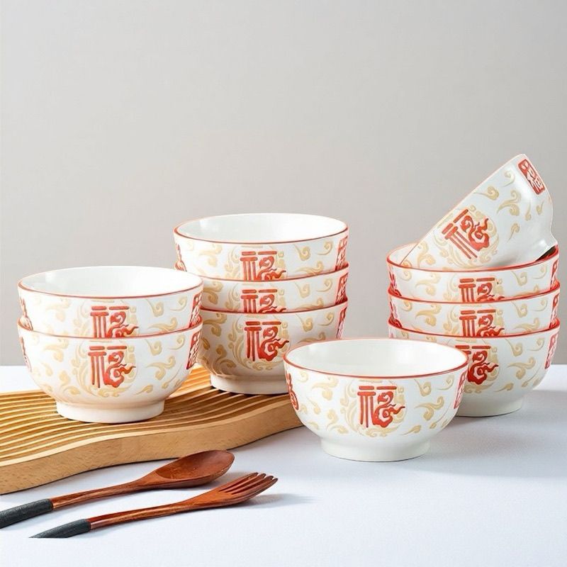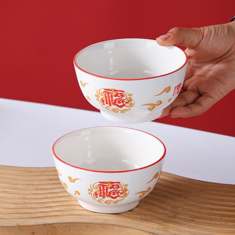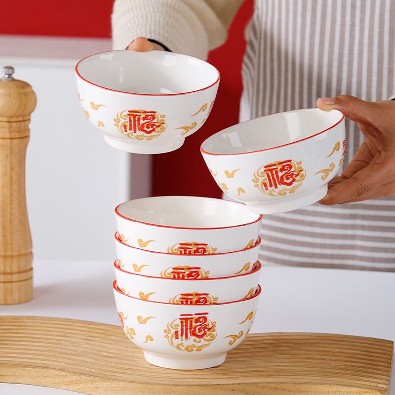 【不掉色】碗家用吃饭红福字国风釉下彩陶瓷高颜值加厚套装便宜