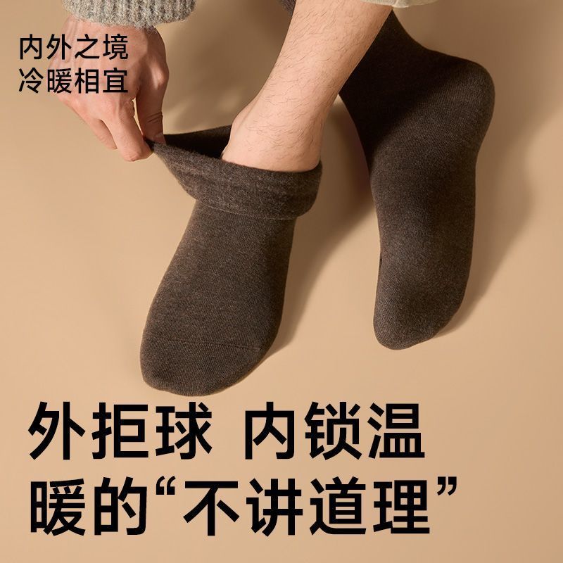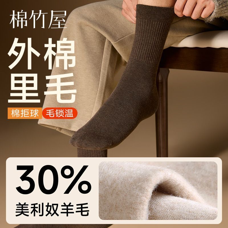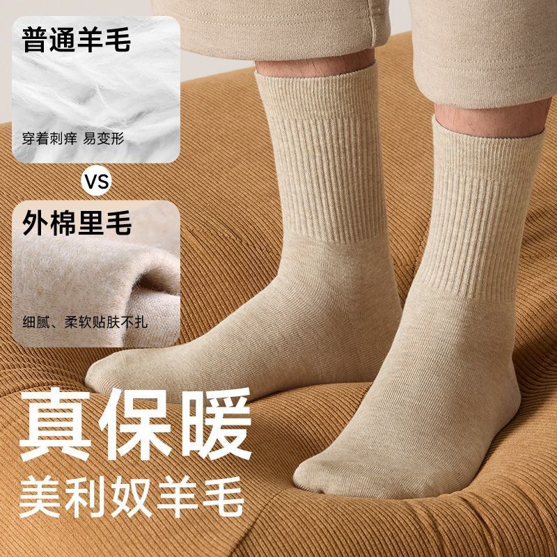 袜子男款春秋季羊毛加绒中筒袜加厚保暖防臭抗起球秋冬男士长筒袜