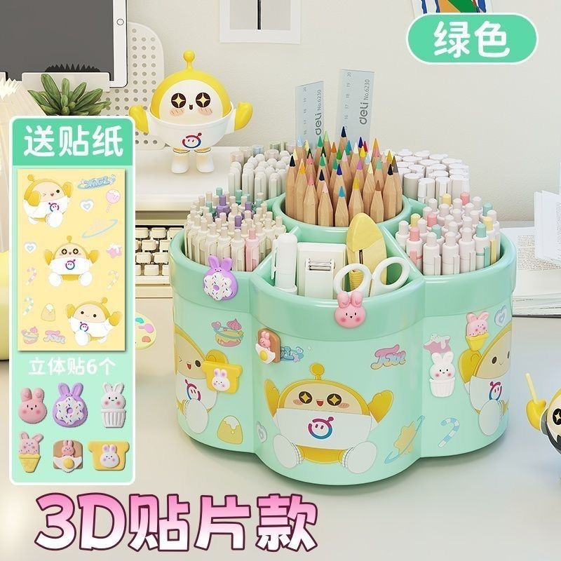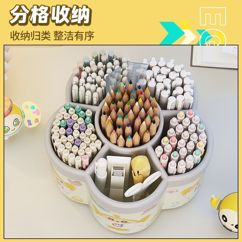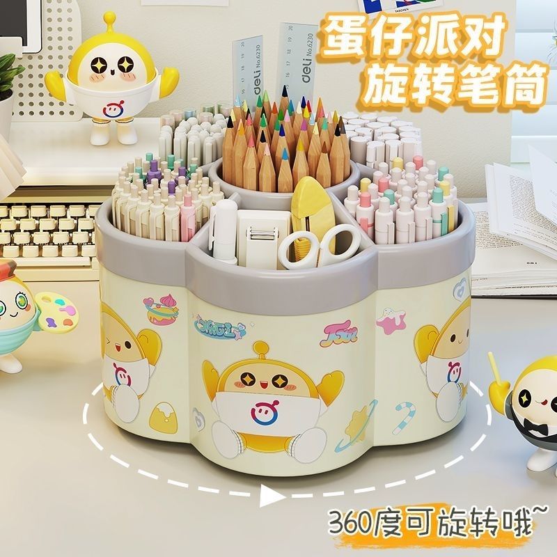 新款蛋仔派对360度旋转笔筒卡通儿童桌面文具化妆品收纳大号收纳