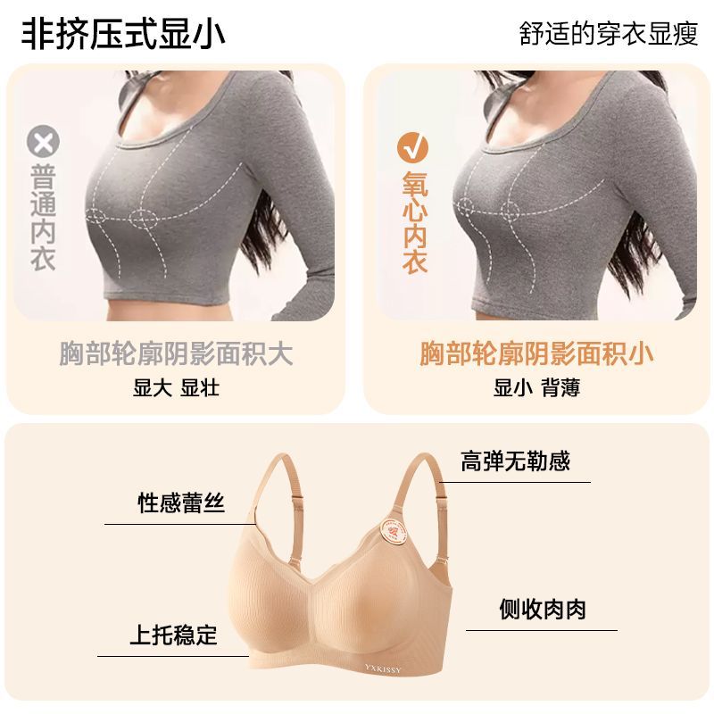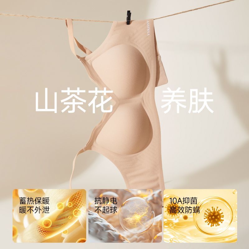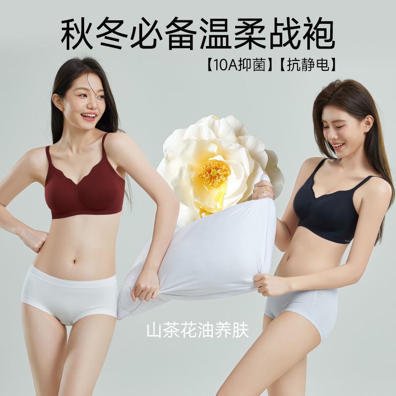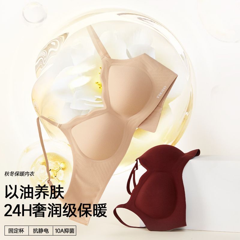 【3件装】Kissy氧心秋冬保暖无痕内衣女山茶花油滋润养肤美背文胸