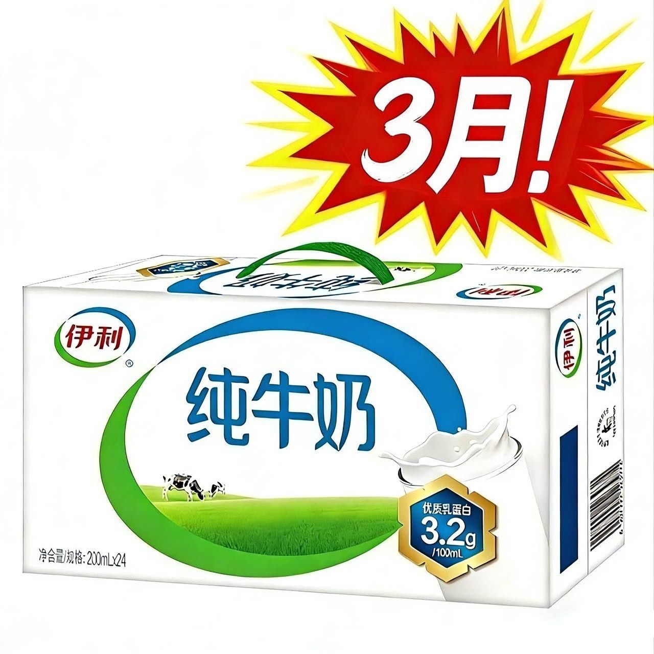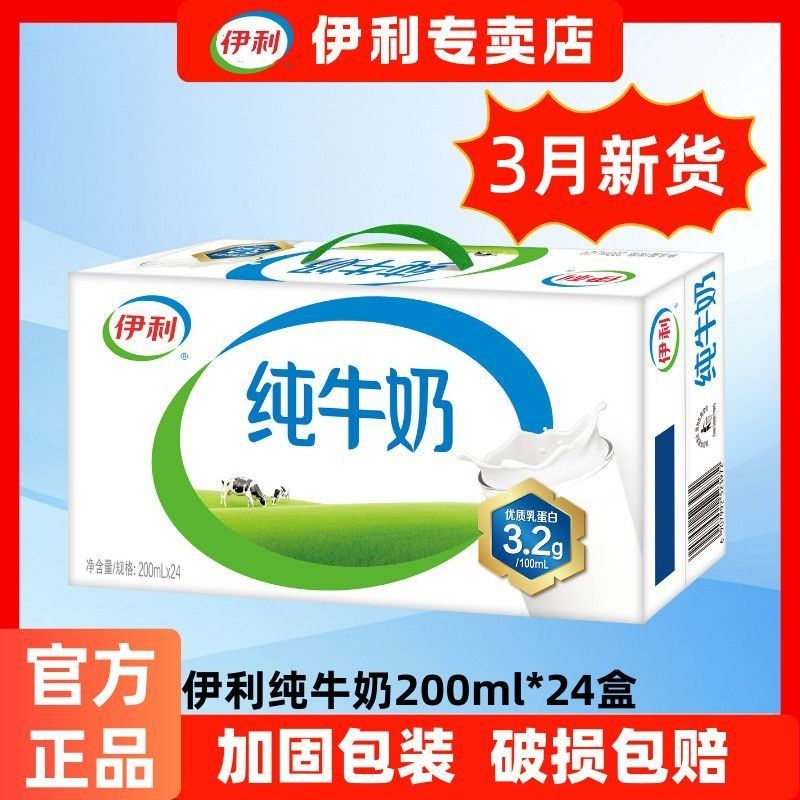 【新鲜日期】3月伊利纯牛奶200ml*24盒整箱批发学生营养纯奶正品