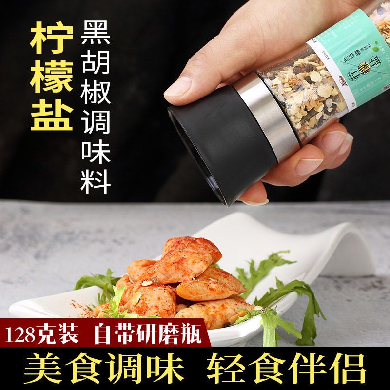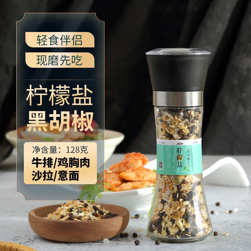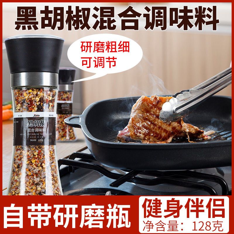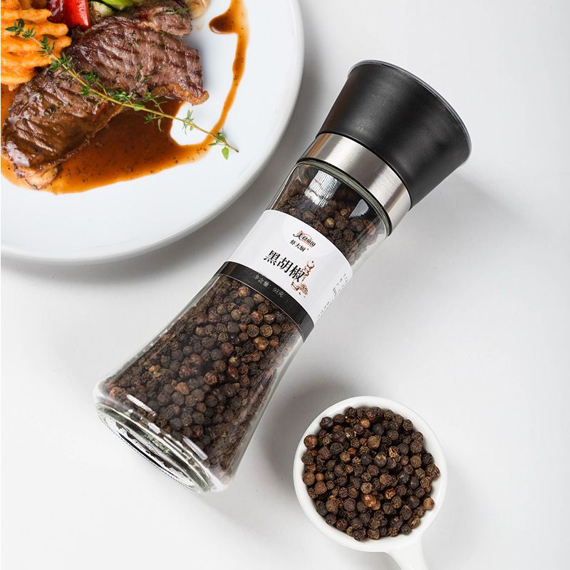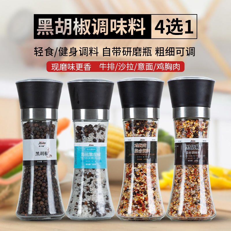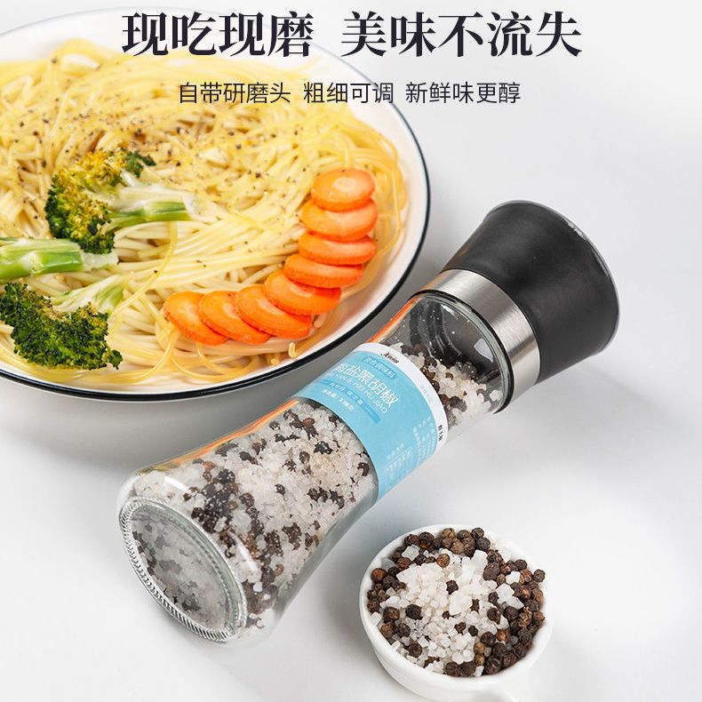 黑胡椒海盐黑胡椒粒黑胡椒研磨器自带黑胡椒粉牛排鸡胸肉调料健身