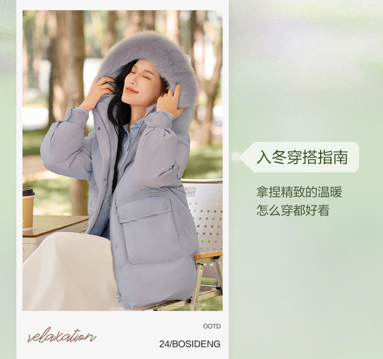 波司登 【爆款推荐】冬季女可脱卸帽中长款时尚休闲羽绒服